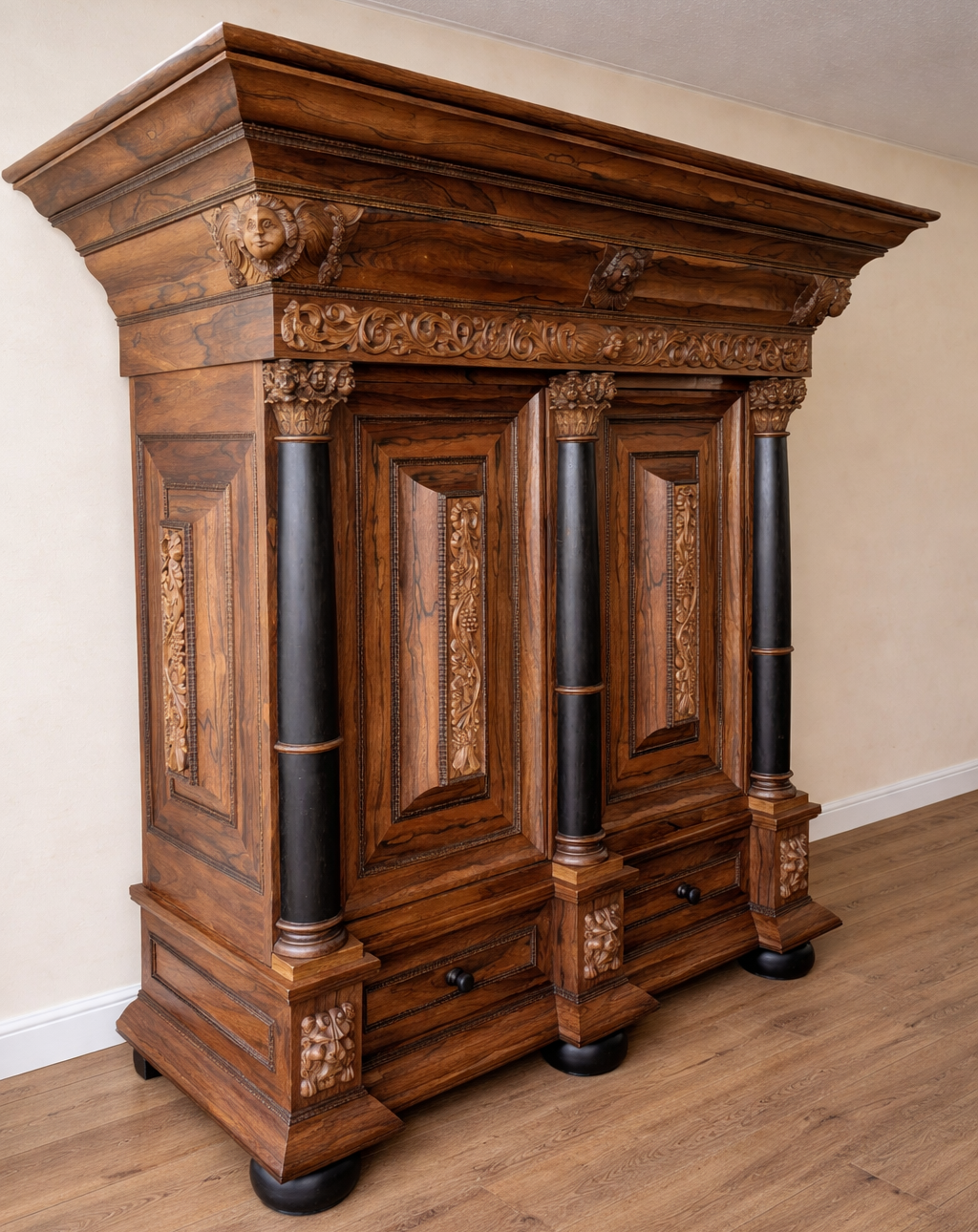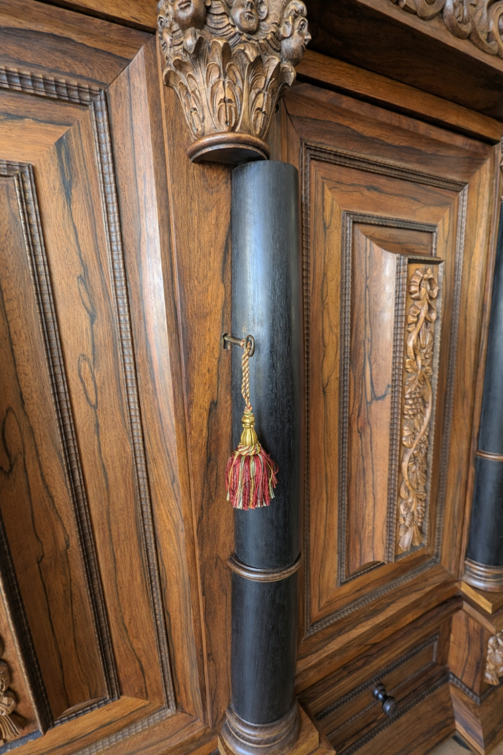 PRECIO CON EL IVA INCLUIDO APARADOR, ARMARIO, BUFFET ANTIGUO ELABORADO CON MADERAS NOBLES : ROBLE Y PALISANDRO PERFECTO ESTADO, IMPECABLE, COMO NUEVO CONSERVA TODAS SUS PIEZAS ORIGINALES FORMATO DE CIERRE OCULTO MEDIDAS : 201 X 65-80 X 197 DESMONTABLE EN VARIAS PIEZAS ARTÍCULO DE SEGUNDA MANO
