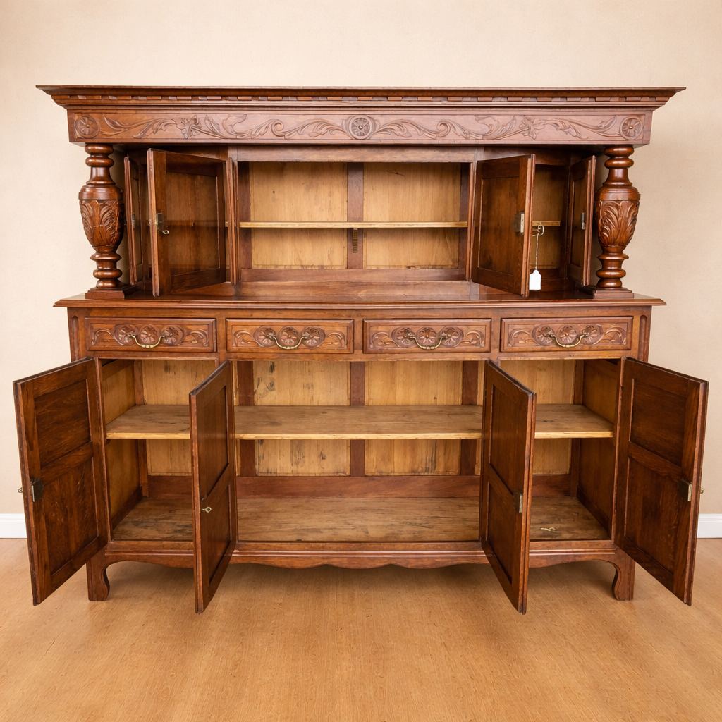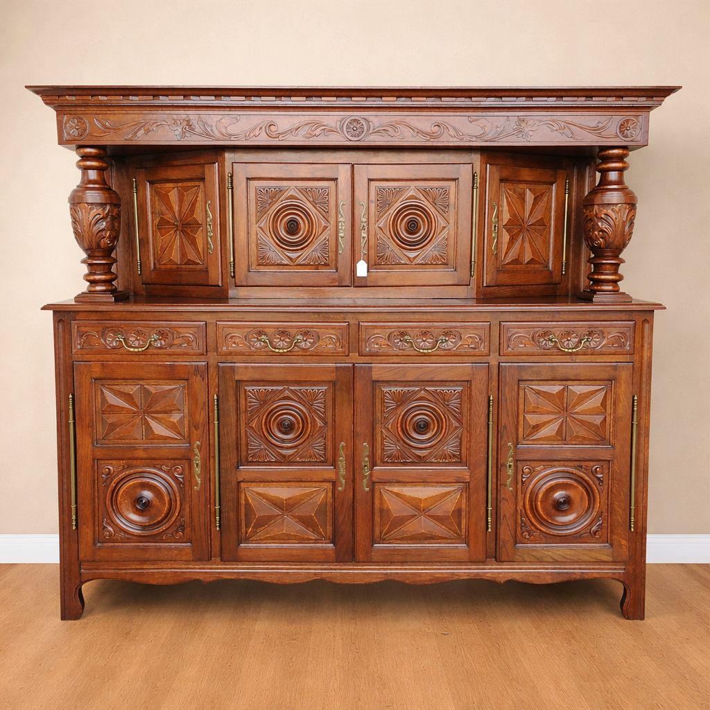 PRECIO CON EL IVA INCLUIDO BUFFET TIPO TUDOR PIEZA ANTIGUA DE GRAN CALIDAD, EN MUY BUENAS CONDICIONES MADERAS DE ROBLE Y CASTAÑO, CON PILASTRAS EN CAOBA MEDIDAS: 201 X 51 X 179 REF. FR-9/1 ARTÍCULO DE SEGUNDA MANO Productos en la misma categoría